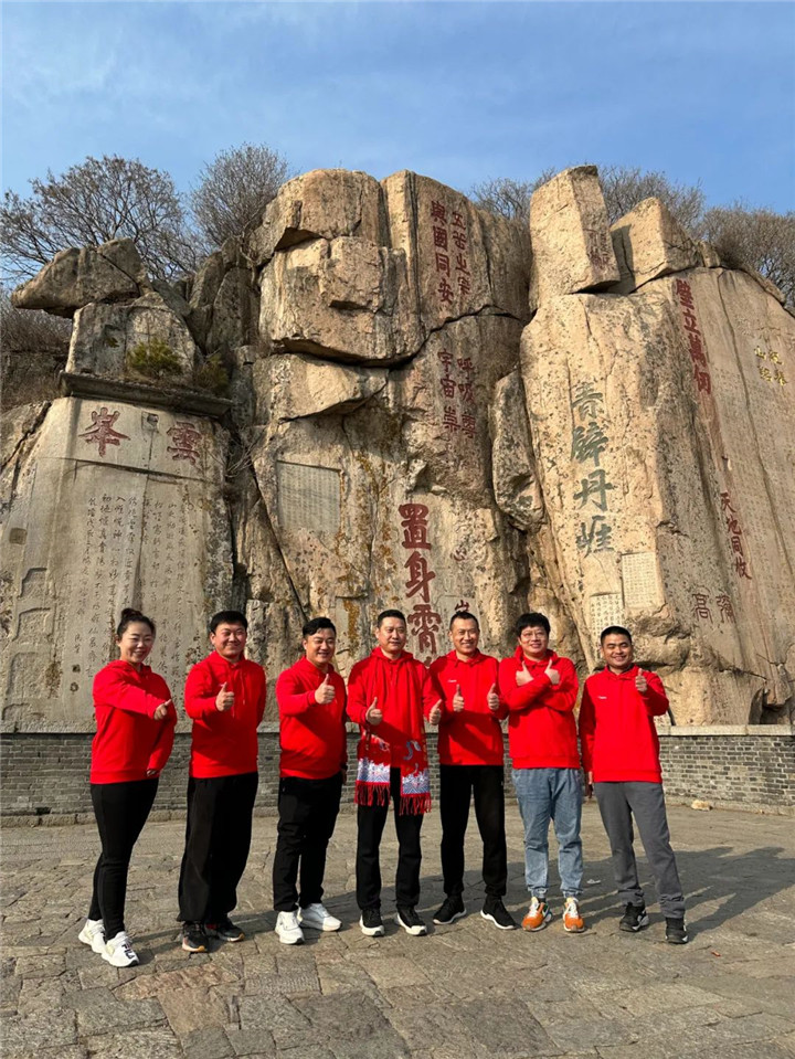 坐井观天,只有一孔之见;登山远望,方知天外有天。在锐强体育董事长兼总经理王进华先生的带领下,锐强人齐聚泰山脚下,“登高必自卑,行远必自迩”。脚踏实地一直是锐强人践行的箴言。登顶的第一步不仅是突破十八盘的第一步,更是公司在新形势下,登上新起点,开启新发展的第一步。