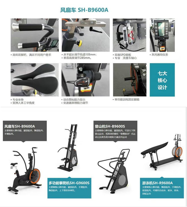 舒华卧式商用爱游戏体育-爱游戏| 爱游戏官方网站 SH-B9100U(V10)采用自发电,40段电磁控阻力系统,9.3kg飞轮重量。